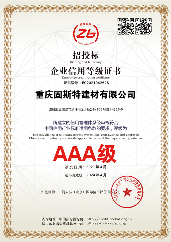 重慶固斯特:AAA級信用企業(yè)